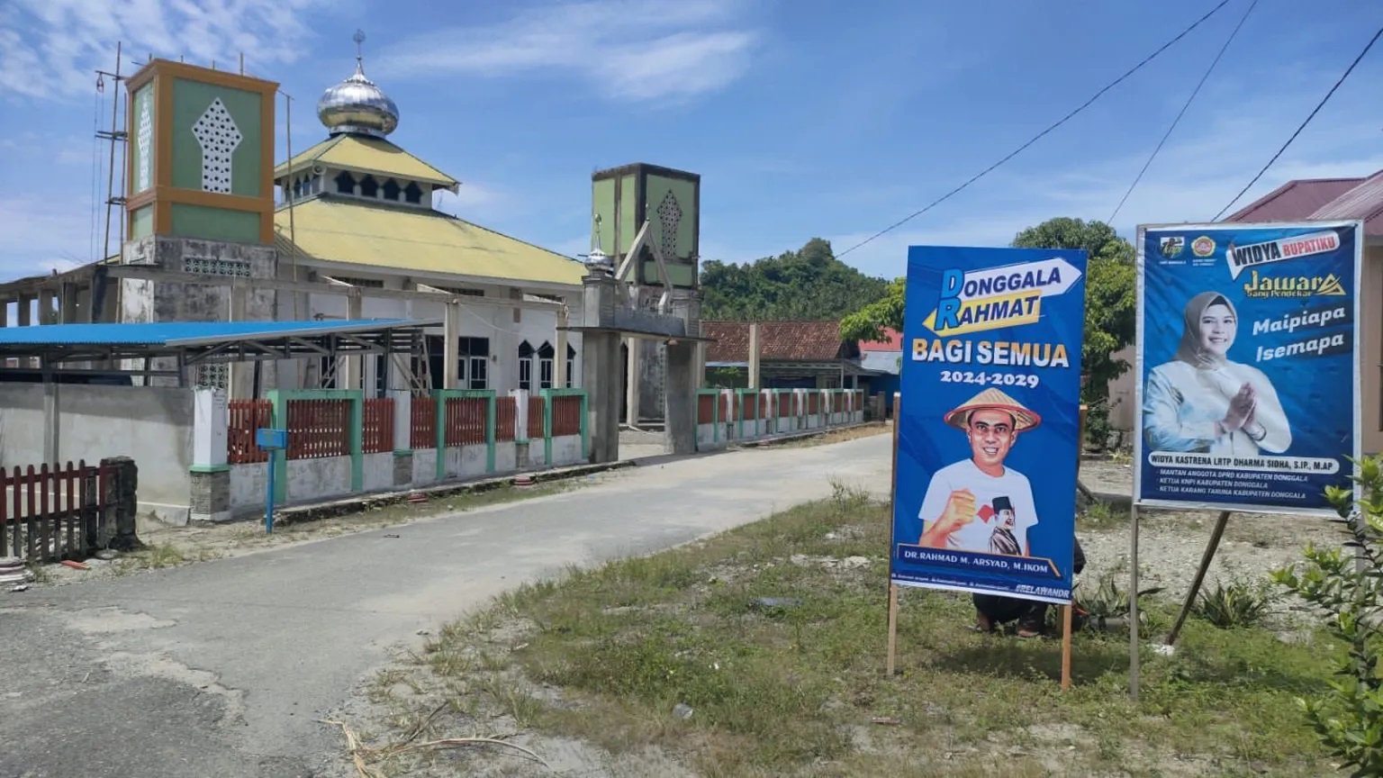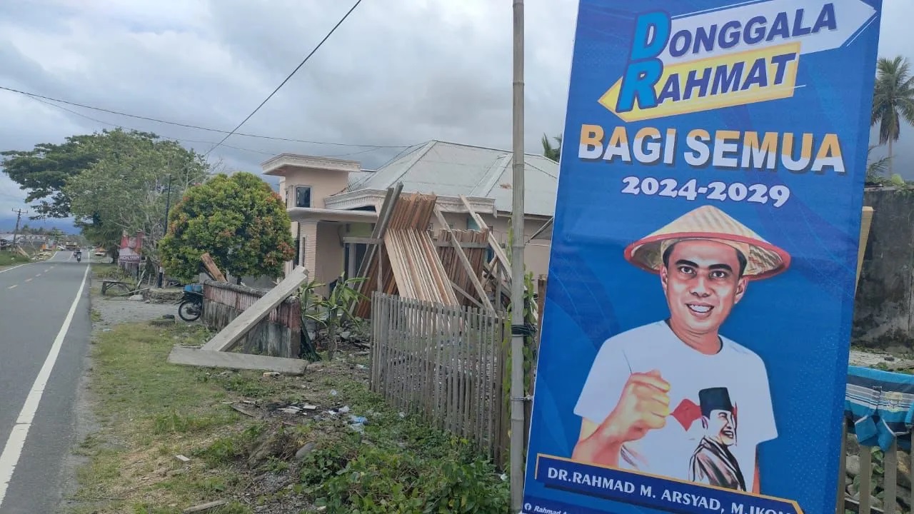 DONGGALA,WARTAINFO.ID – Hampir di seluruh desa, pagar rumah, sampai badan jalan baik wilayah Banawa bersaudara, sampai wilayah pantai barat paling ujung yakni kecamatan Sojol Utara, bertabur baliho maupun spanduk bertuliskan “Donggala Rahmat (Dr) bagi semua” yang bergambar sosok figur Dr Rahmad M Arsyad yang menggunakan Toru simbol topi keseharin bagi petani dan nelayan.