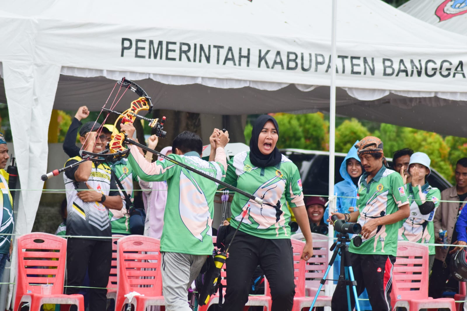 pasangan atlet Banggai, Andi Muhammad Khair/Annisa Veronica Putri mengungguli pasangan atlet Morowali, Muhammad Sibghatullah/Rika Anggraeni Asti di nomor Mix Compound Bow Team Standart Bow