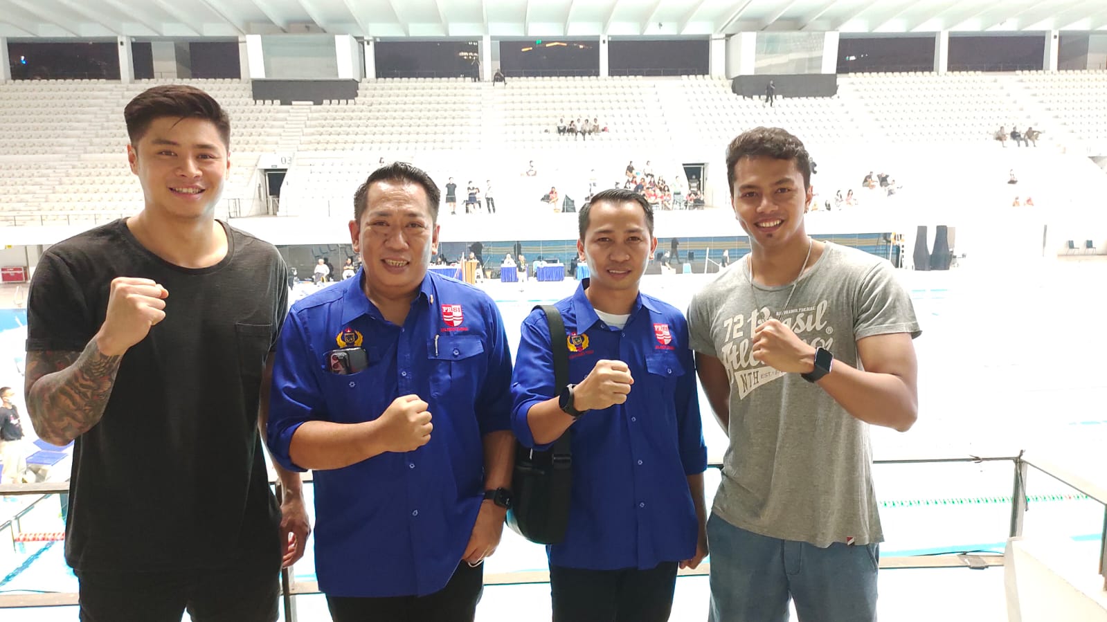 Kedatangan Ketua Umum Koni Sulteng M Nizar Rahmatu dikolam renang aquatik Gelora Bung Karno sudah kedua kalinya dari pembukaan Kejurnas Kemarin dan hari kedua pelaksanaan kejurnas ini