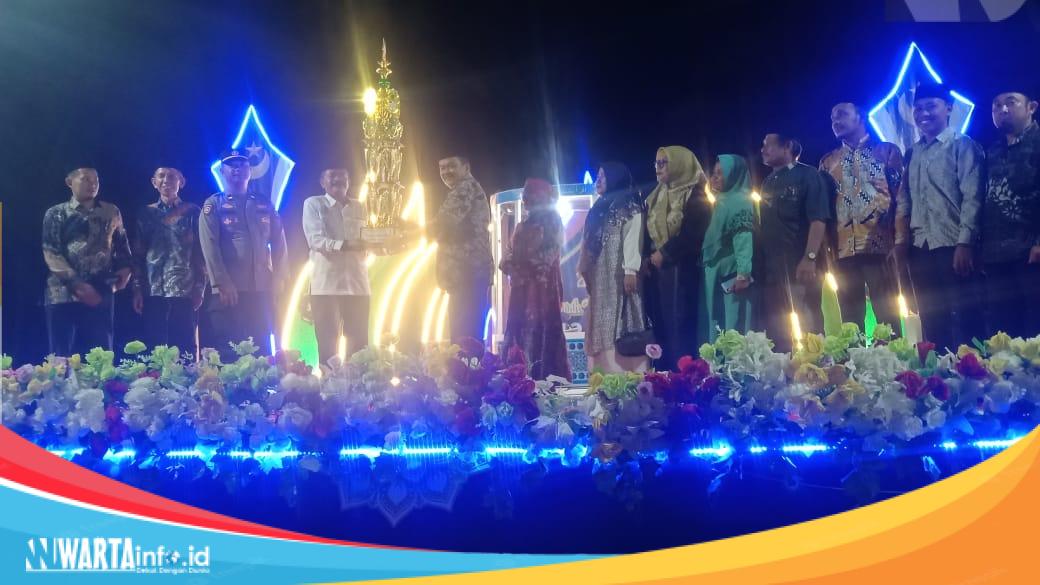 Wakil Bupati Parigi Moutong, Hi. Abdul Sahid, secara simbolis menyerahkan trofi kepada juara umum dalam acara penutupan Musabaqah Tilawatil Qur’an (MTQ) ke-9 Tingkat Kecamatan Parigi Utara di Lapangan Desa Avolua, Jumat (4/7/2025). Acara berlangsung meriah dengan penuh nuansa religius dan semangat kebersamaan antarwarga. Foto: Diskominfo Parimo