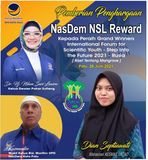 Terkait program sore harinya, Wakil Ketua Bidang Maritim, Drs. Kasmudin, selaku Penjab, menyampaikan akan ada agenda Pemberian Reward oleh Ibu Dr. Hj. Nilam Sari Lawira, SP, MP kepada Dian Septyawati, mahasiswi UNTAD Peraih Penghargaan di kompetisi Sains RUSIA baru-baru ini, mengalahkan berbagai periset muda dari sejumlah negara lain.