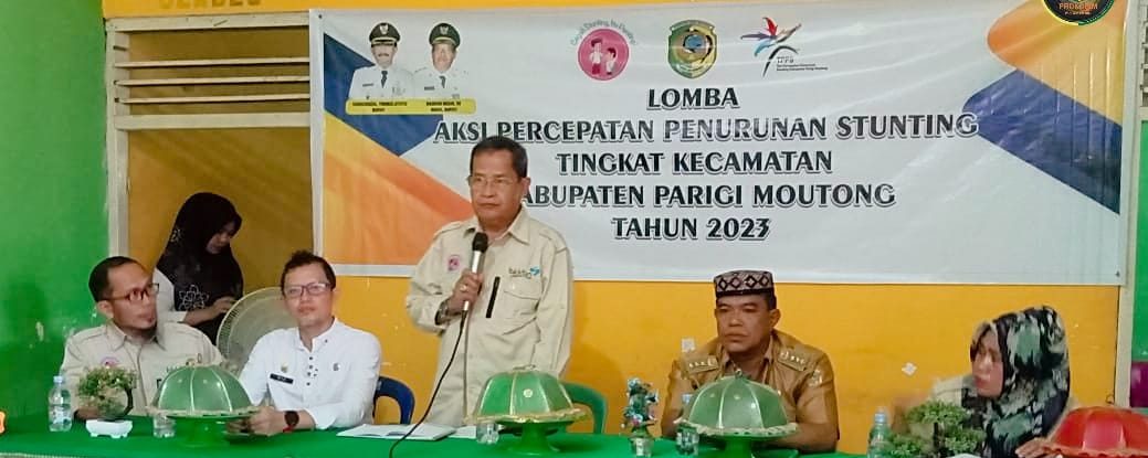 Sambutan Wakil Bupati Parigi Moutong mengatakan, mengapresiasi pemerintah kecamatan Moutong yang telah melaksanakan percepatan penurunan aksi stunting melalui 5 pilar pada poin pilar ketiga yaitu konvergensi, Koordinasi, dan konsolidasi program pusat, daerah, dan desa.