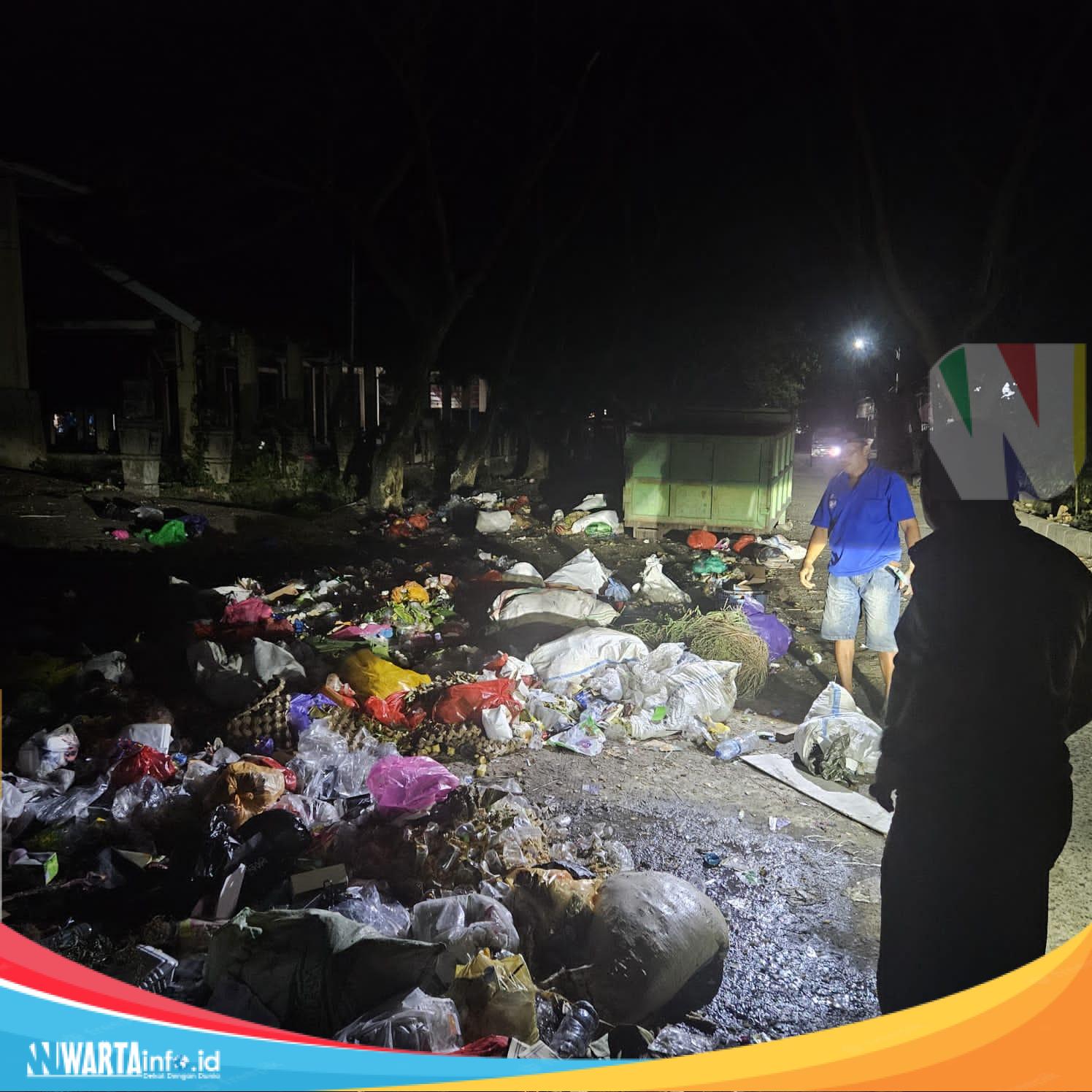 Tumpukan sampah yang menggunung dan berserakan di ruas jalan Pasar Sentral Parigi terlihat jelas dalam peninjauan malam oleh Wakil Bupati Parigi Moutong, Abdul Sahid, pada Minggu (29/6/2025). Foto: Diskominfo Parimo